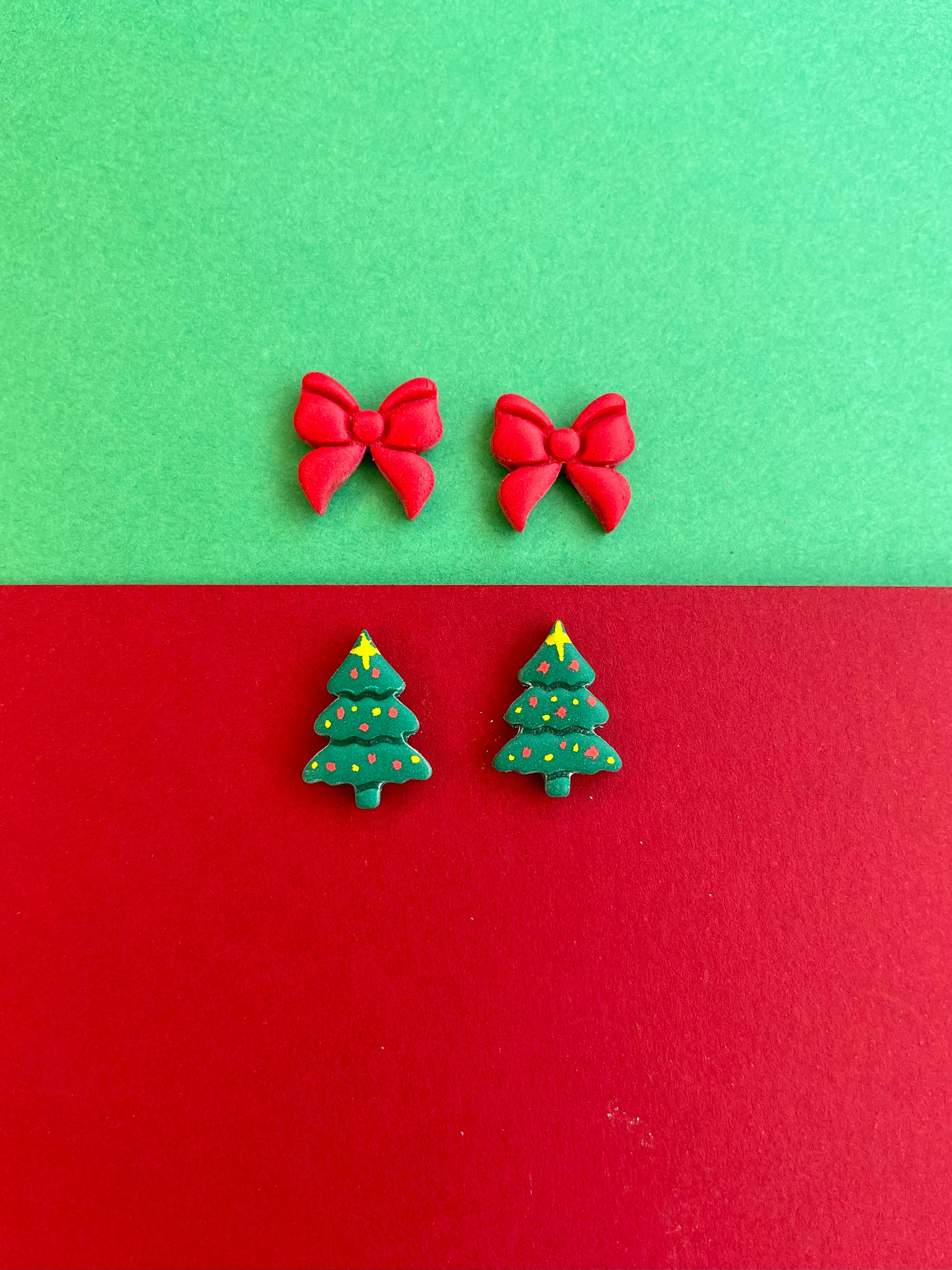 Merry Christmas! We are finally reaching my favourite time of year! I loved creating these Christmas red bows and Christmas tree studs for the festive season. Pair these with your cosiest jumper, comfy boots and a red bow in your hair of course!
