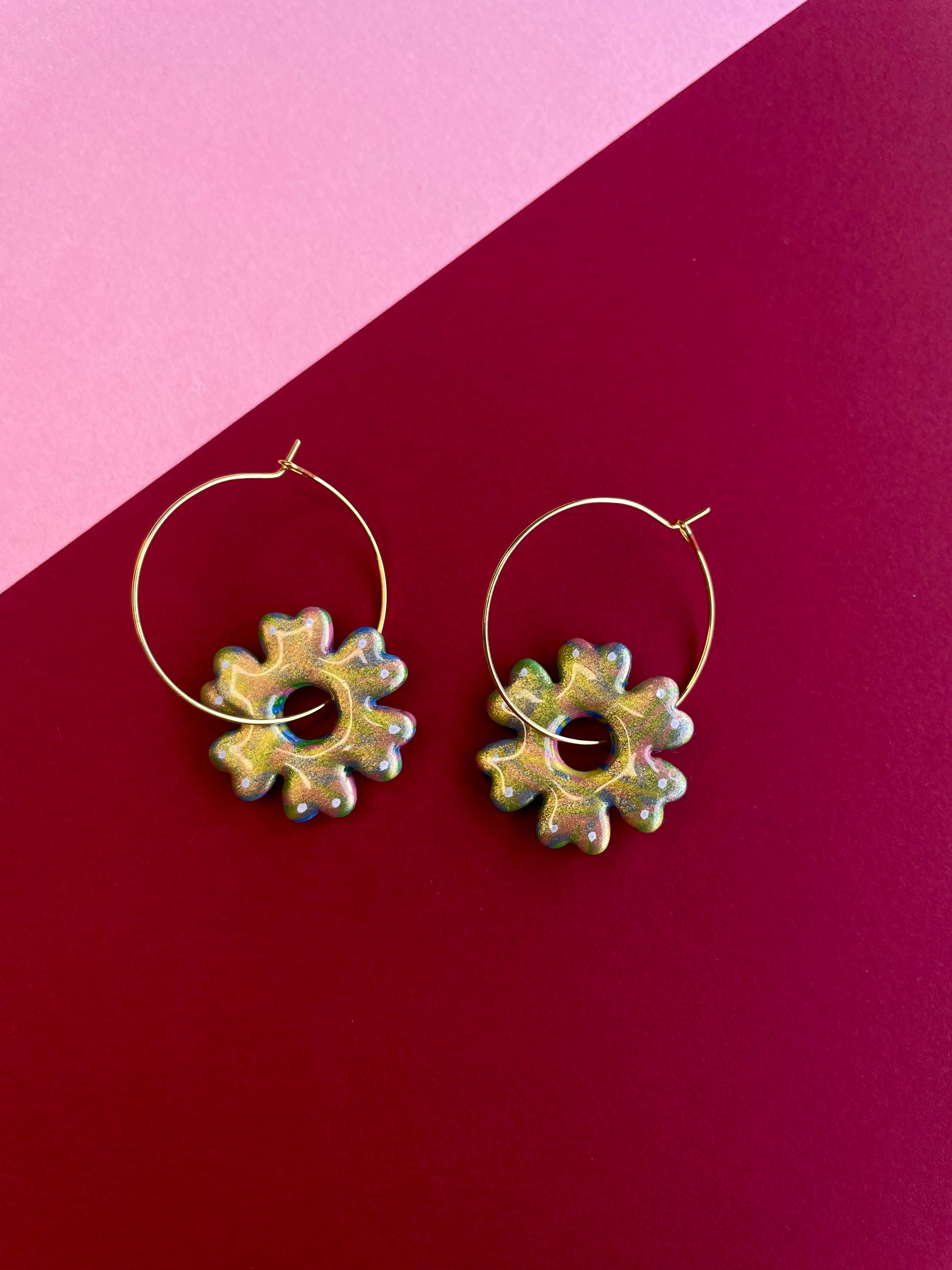 The earrings are lightweight and comfortable to wear. Each earring is made by hand by myself in Dublin, Ireland. The gold plated hoops may irritate sensitive ears, so leave a note at checkout if you would prefer stainless steel hoops. (*Note that the stainless steel will appear a darker silver than the hoops shown in the photograph*). The earrings are made from polymer clay.